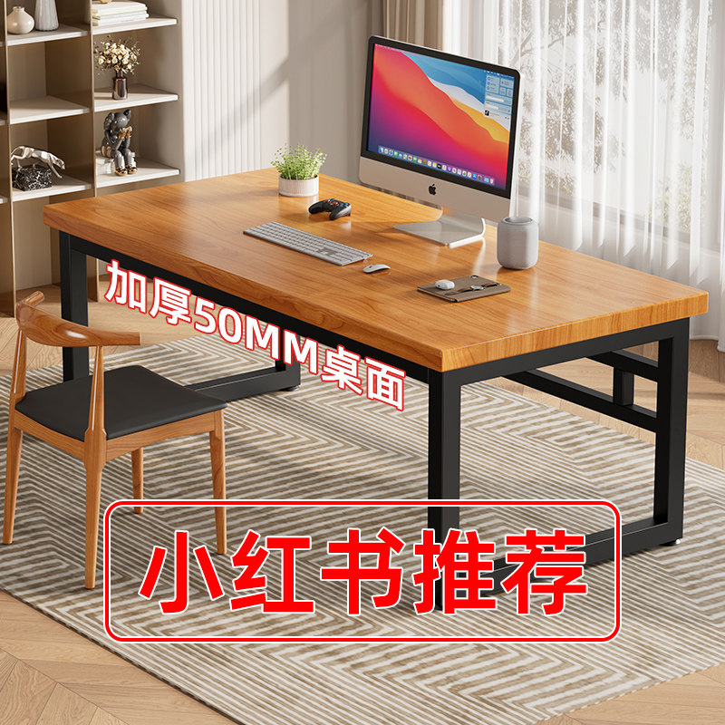 Solid Wood Computer Desk Bedroom Home Iron Art Desk Solid Wood Desk Modern Brief Writing Desk Bench Table-Taobao