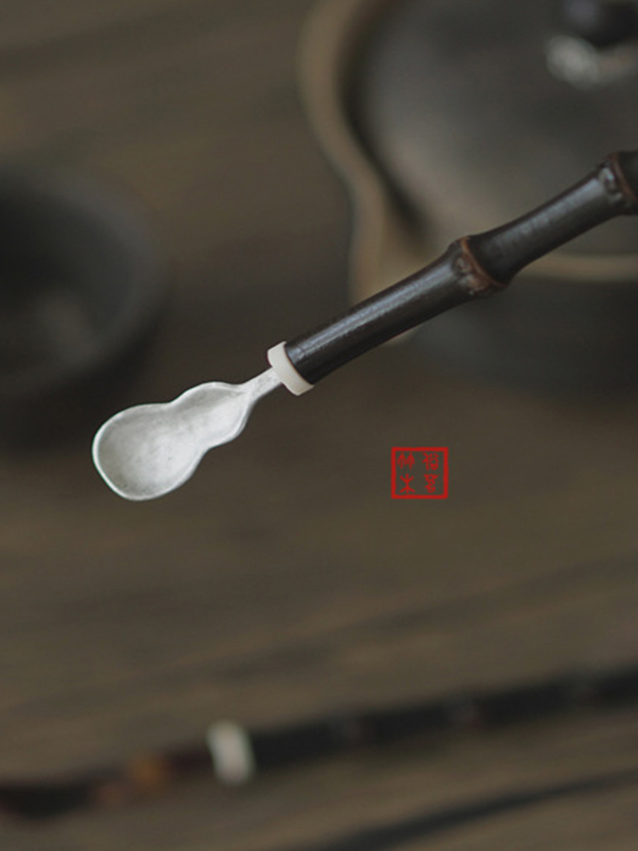 Handmade Natural Purple Bamboo Handle Tea Dial Tea Spoon Day Style Retro Pure Tin Teaspoon Six Gentlemen Take Tea Tools Tea Daub-Taobao