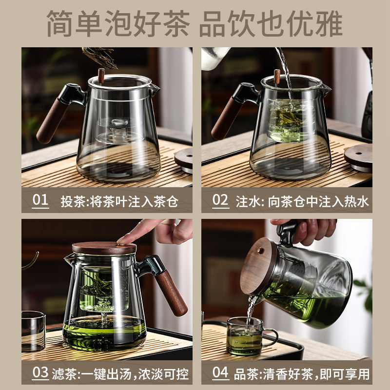 Floating Comfort Cups Bubble Teapot Hupeach Wood Handle Glass Liner One Key Filter Tea Water Separation Press-Type Punch Teapot-Taobao
