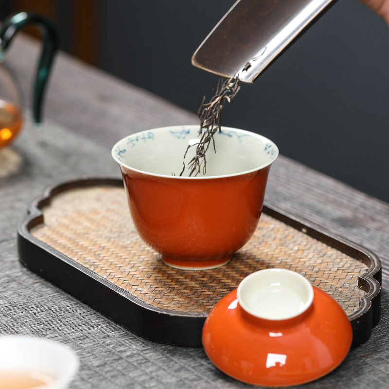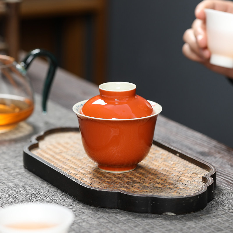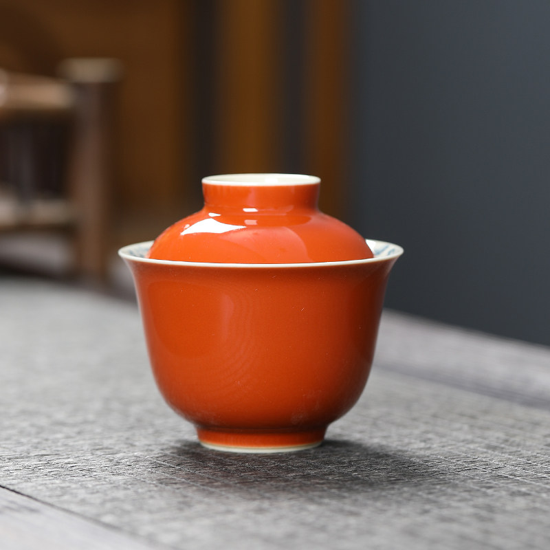 Su's Ceramic Venerable Tea Bowl Kongfu Tea With Two Talents Cover Bowl Thin Tire Porcelain Cover Bowl Ceramic Bean Red Cover Bowl-Taobao