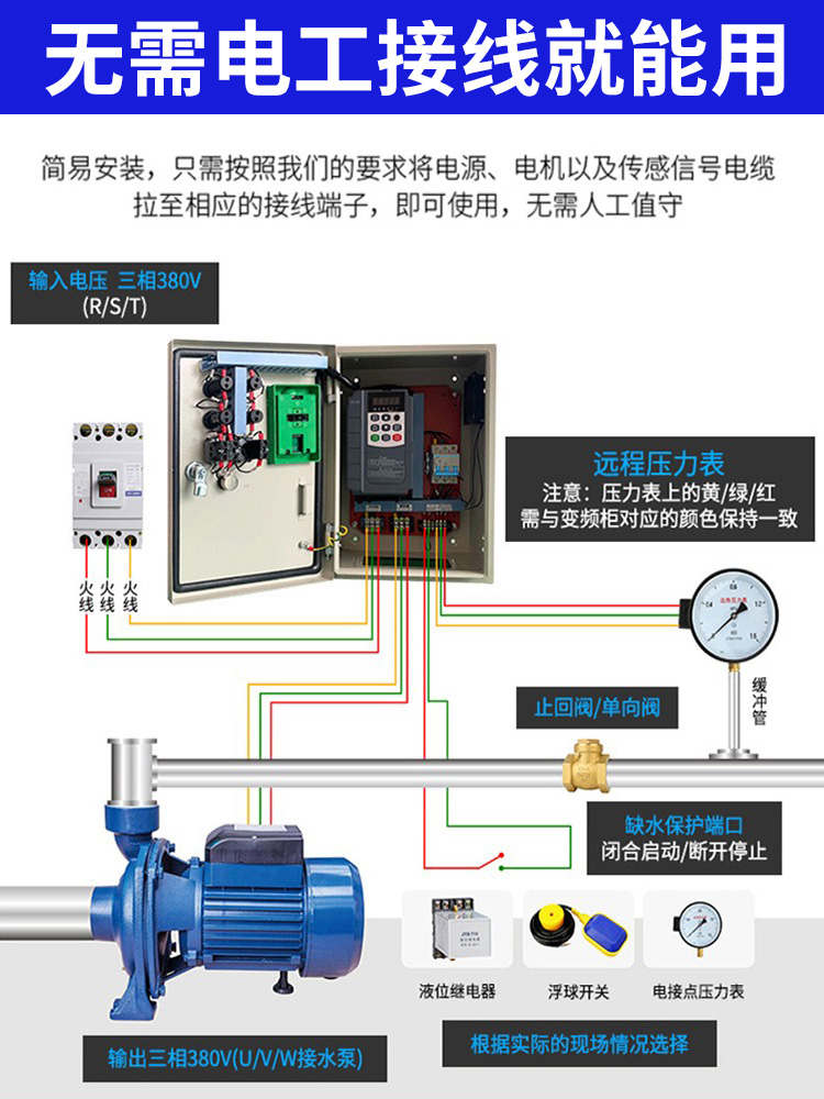 Water pump constant pressure water supply control cabinet frequency converter One drag 12 One use with one equipment 1 5 3 7 5 11kw-Taobao
