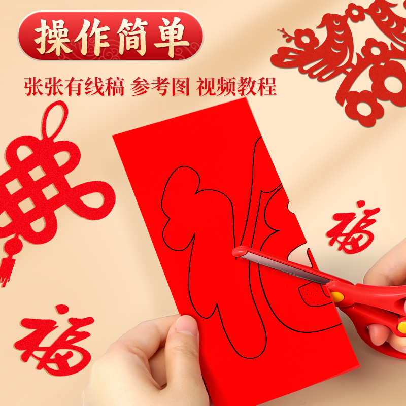 China Wind Spring Festival Cut Paper Color Paper Handmade Paper Children Origami Cut Window Flowers Special Paper Elementary School Students Handmade Tools Suit Diy Make New Year Materials Bag Bottom Draft Pattern Kindergarten Semi-finished Products-Taobao
