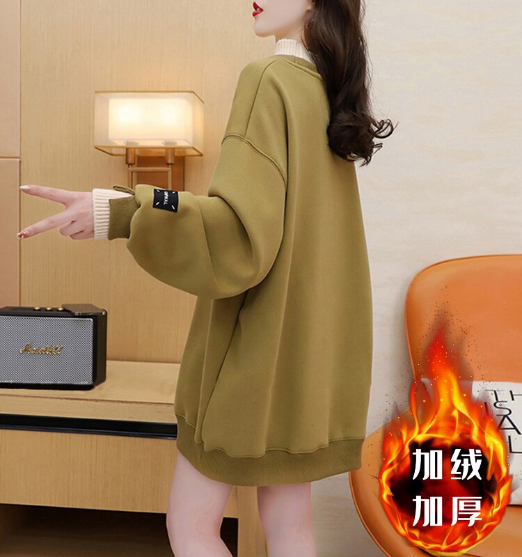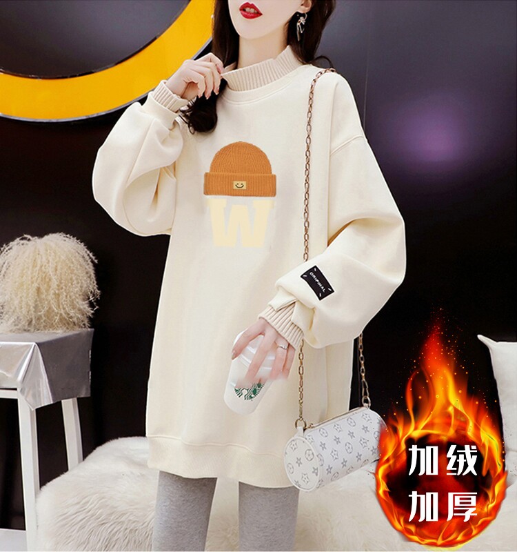 Pregnant Woman Winter Clothing Plus Velvet Clothing Lady Autumn Winter 2023 New Alphabet Thickened Suit Easy collar mid-length blouses-Taobao