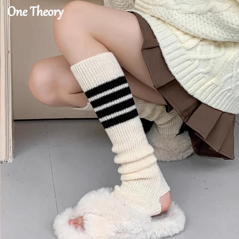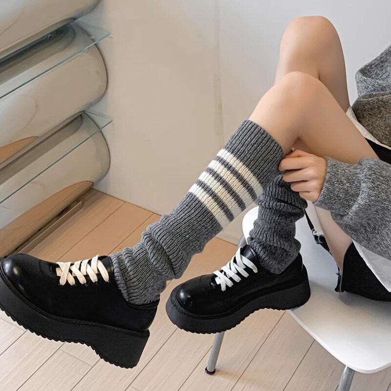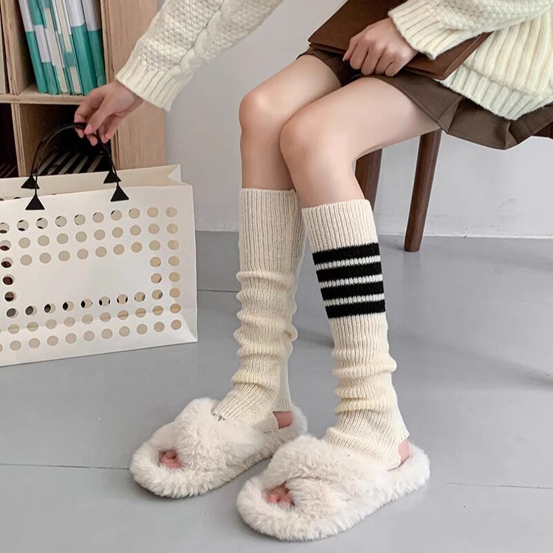 Japan TB Four bars Knitted Socks Jacket Nursing Leg Jacket College Wind Calf Socks students Autumn Winter Warm Foot Sleeve-Taobao