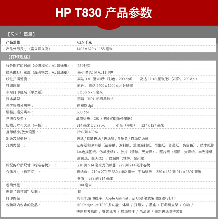 HP HPT830 T1708 plotter with one key blueprint red chapter white picture printed copy scanning all-in-one machine-Taobao