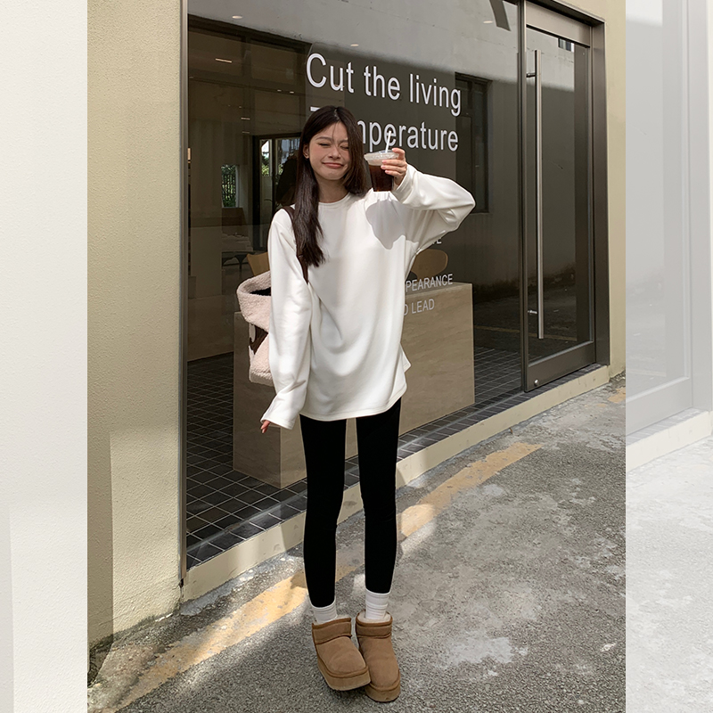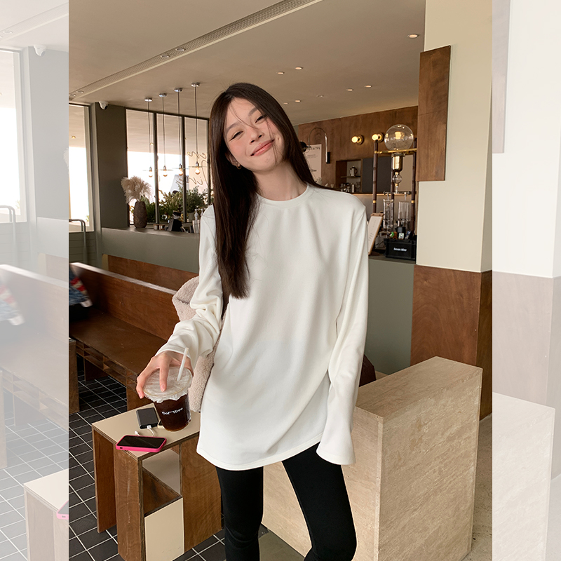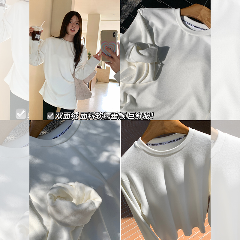 Song Zhengn white plus velvet undershirt woman autumn-winter inside lap loose Devet long sleeve mill wool t-shirt Butt Jacket-Taobao