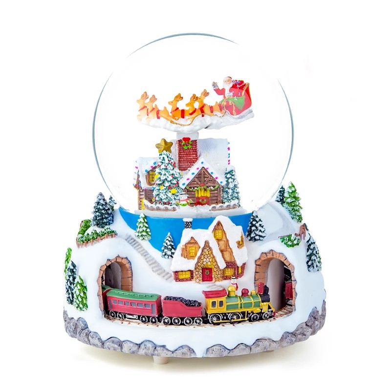 Christmas gift Christmas music box Water crystal ball Santa Claus Lower snow Eight soundbox Children's small train can rotate-Taobao