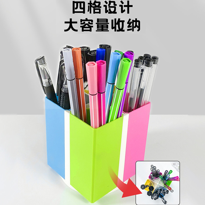 ZiHeart pen holder office Desktop Students desktop pen holder assembled containing box multifunctional color four-grid large-capacity pen case 135-Taobao