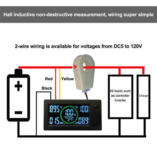 50A 100A 200A 400A LCD Hall Coulomb Meter Counter Voltage Cu
