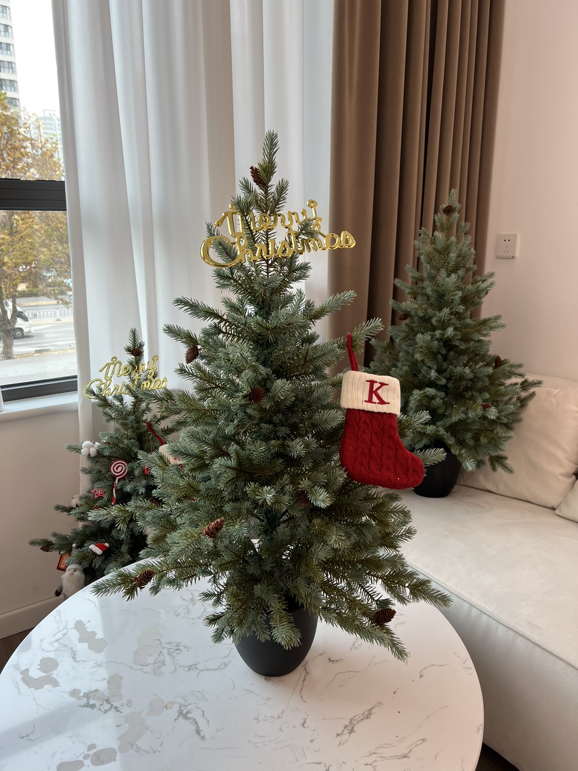 With basin with pine nuts (without lamp strings) 90cm emulation Christmas tree Christmas tree plus light string 30m600led light set Christmas tree plus Christmas stockings plus letters cards