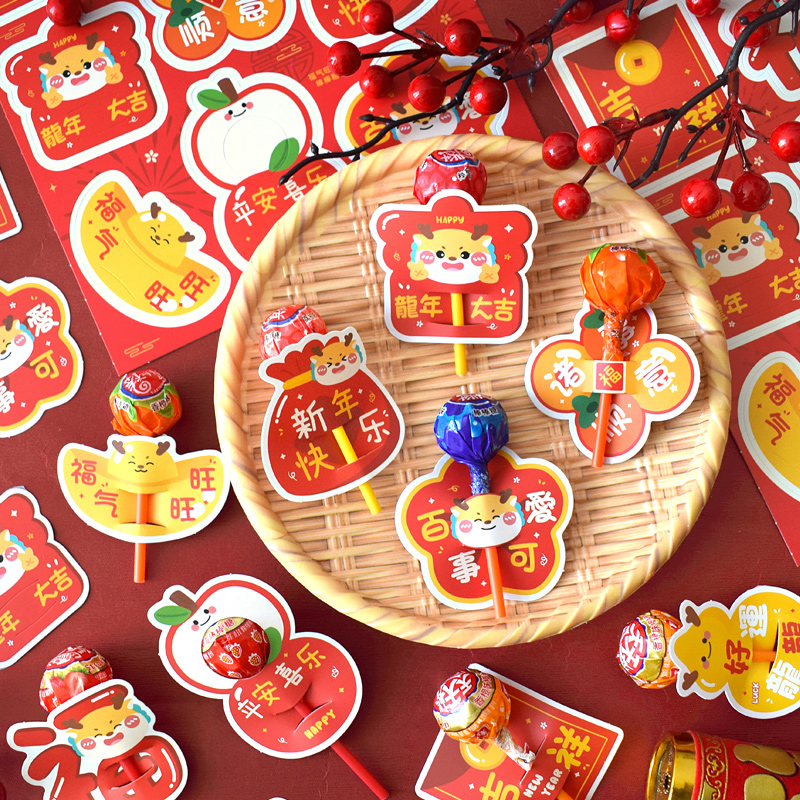 2024 Long New Year's New Year's New Year's New Year's Candy Cards Kindergarten Children Elementary School Children New Year Happy Candy Decoration Cards Paper Cartoon Cute School Teachers Reward Gift Home Kids Greeting Cards Gift-Taobao