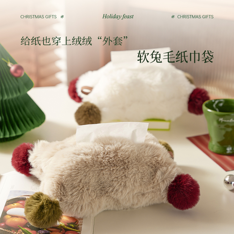 New Year Ambience Winter Plush Paper Towel Bag Living Room Dining Room Table Draw Paper Set Light Lavish Paper Cashier Bag Tissue Box-Taobao