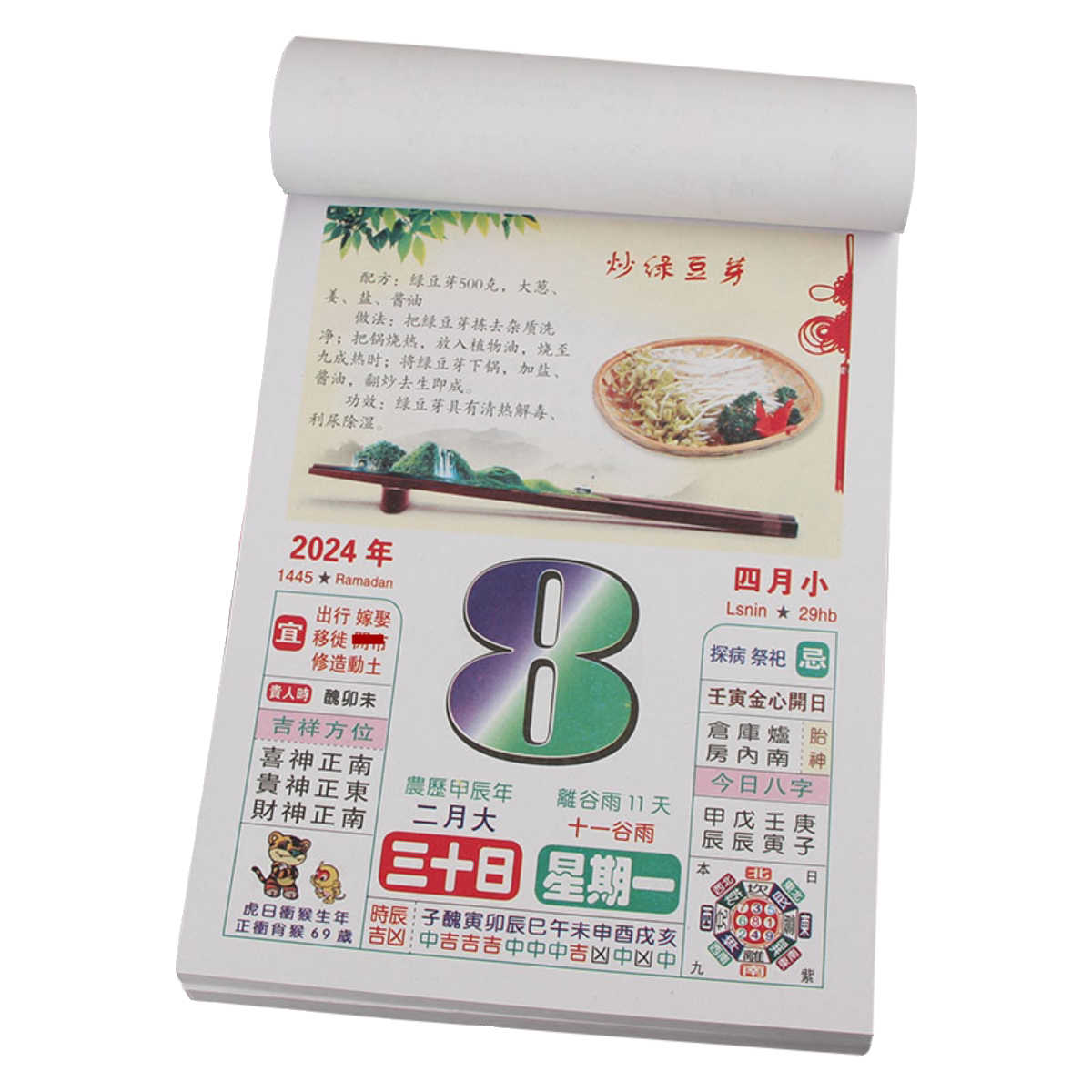 2024 Colour wellness gourmet gourmet calendar hand ripping old Yellow calendar One page of the Emperor's Lunar New Year's Lunar New Year's calendar-Taobao