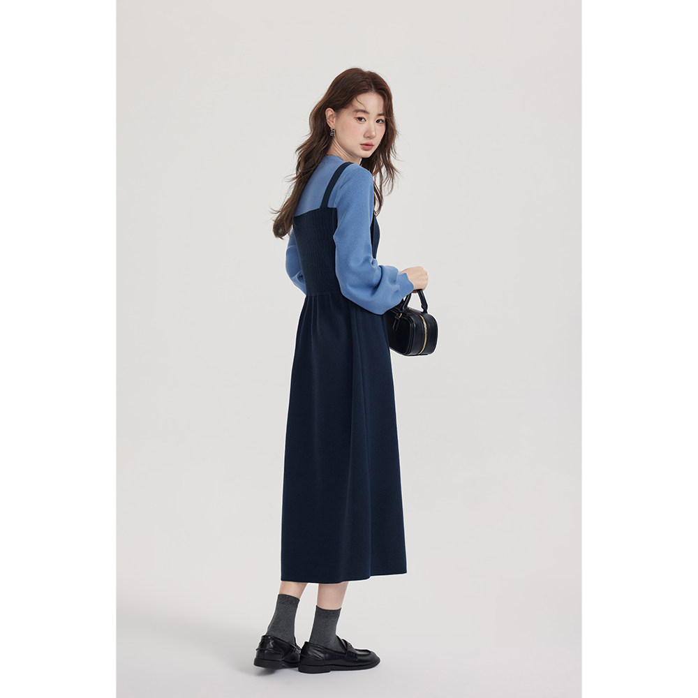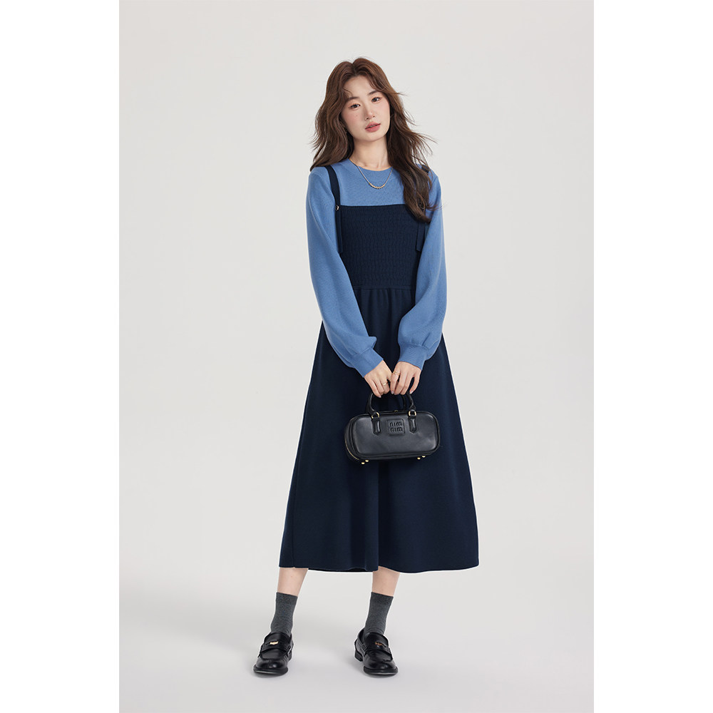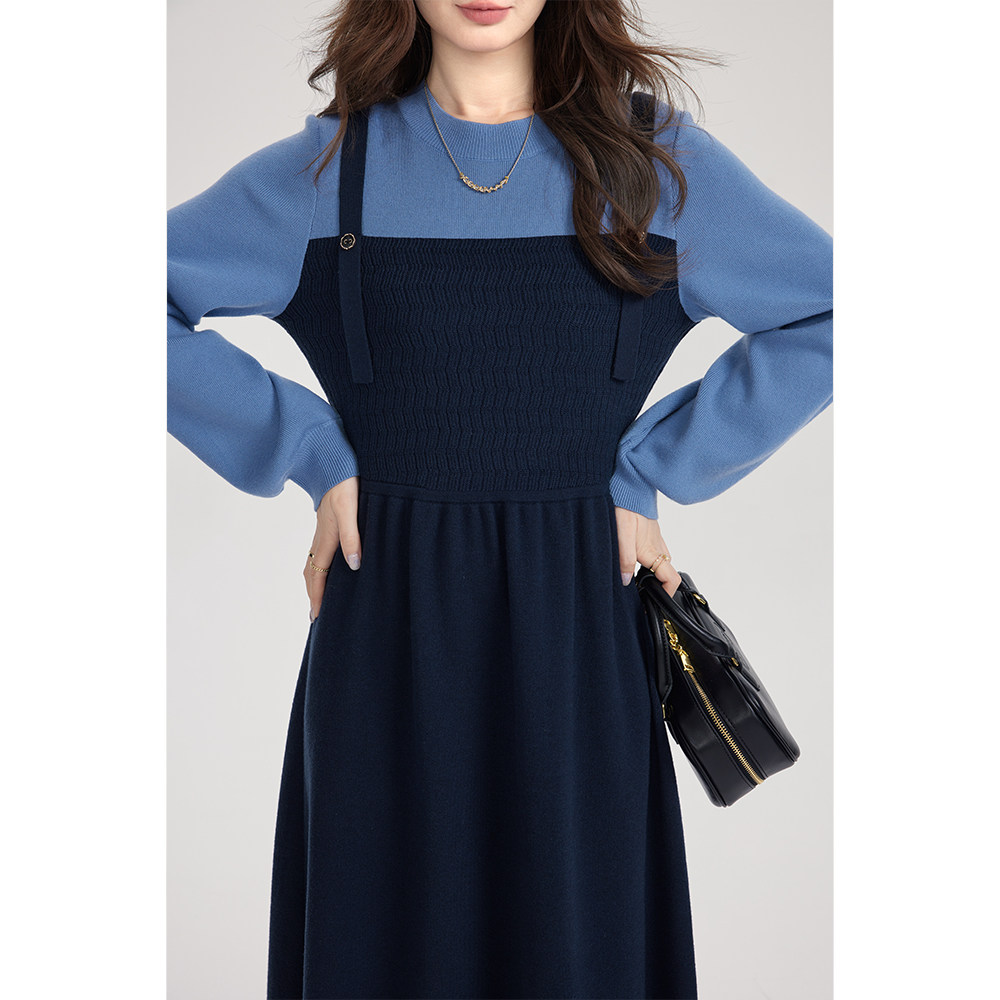 Love Roswell Weiwei big code small fragrant wind even dress lady autumn and winter leave two harnesses knitwear style high waist a long skirt-Taobao
