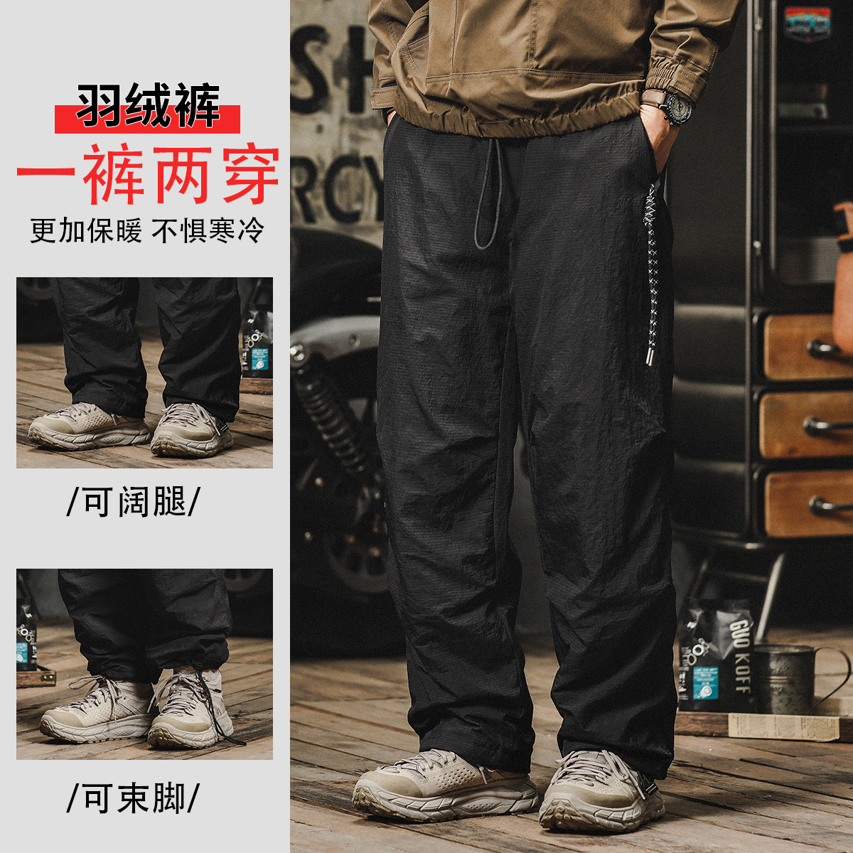 Down Pants Men Winter Easy Tide Cards American Drawing Rope Paratrooper Pants Men Warm Frock Outside Wearing Ski Cotton Pants-Taobao