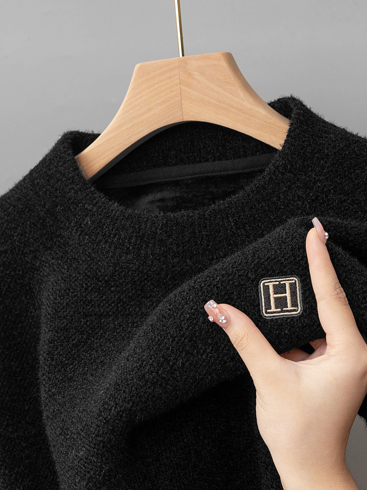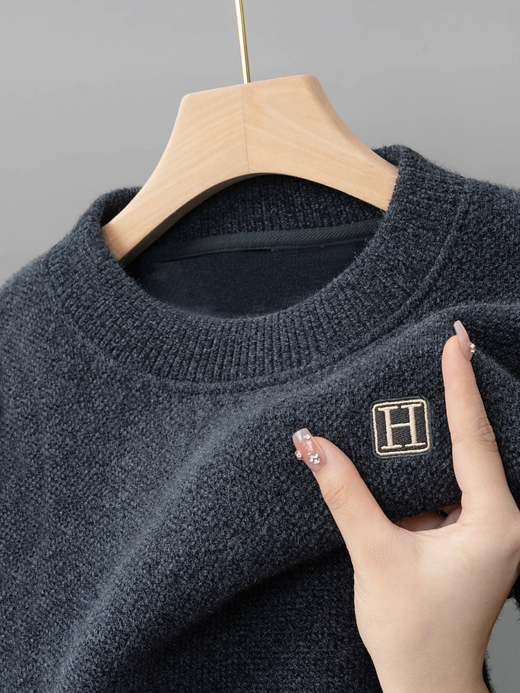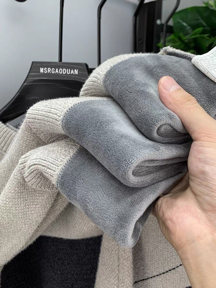 (Integrated velvet) High-end round neck sweater men's thickened velvet thermal top Chenille sweater pull-up base shirt