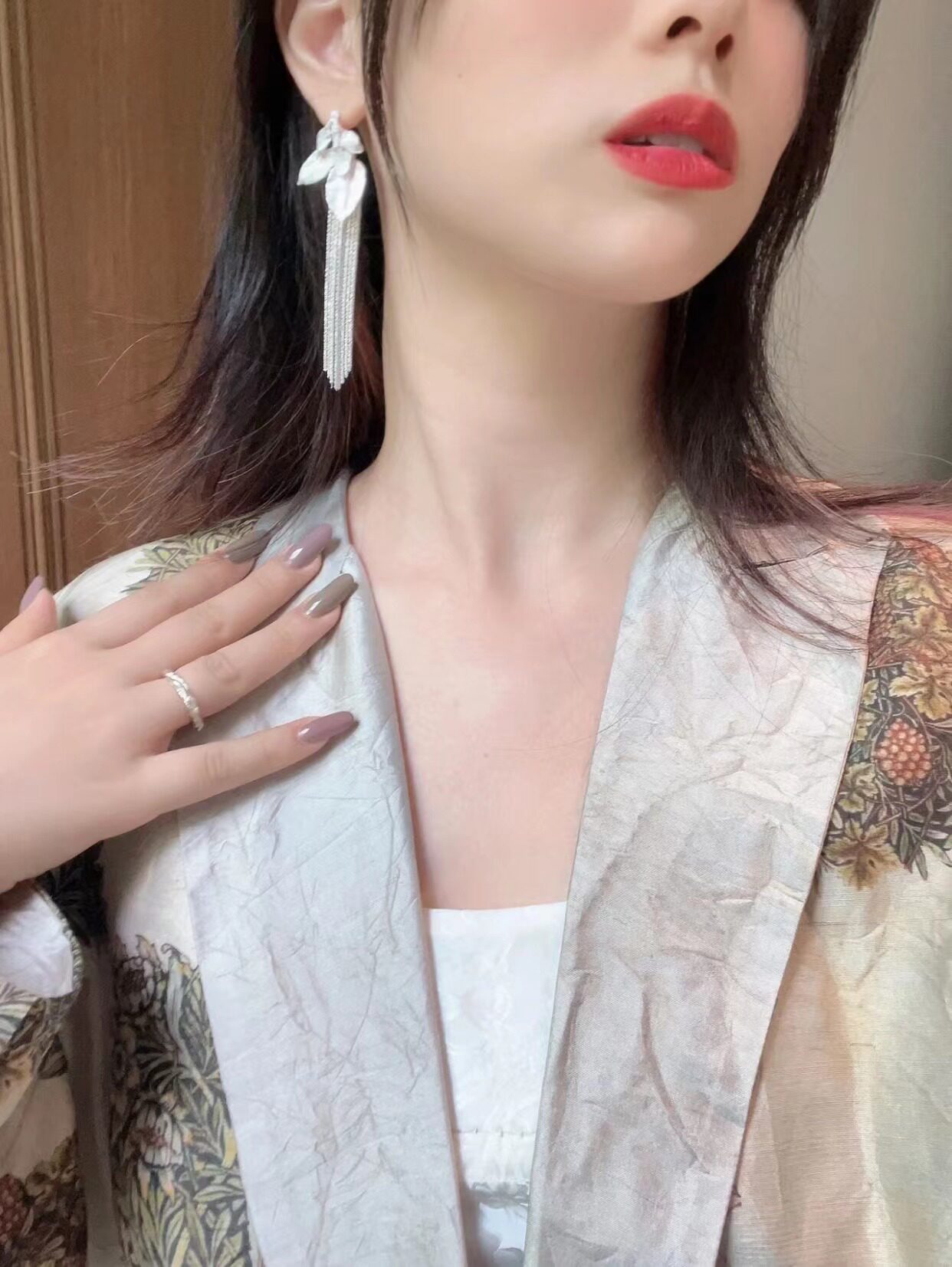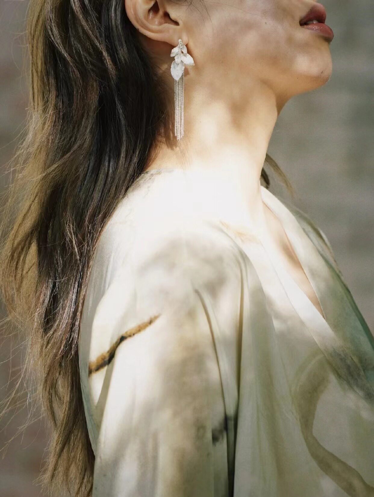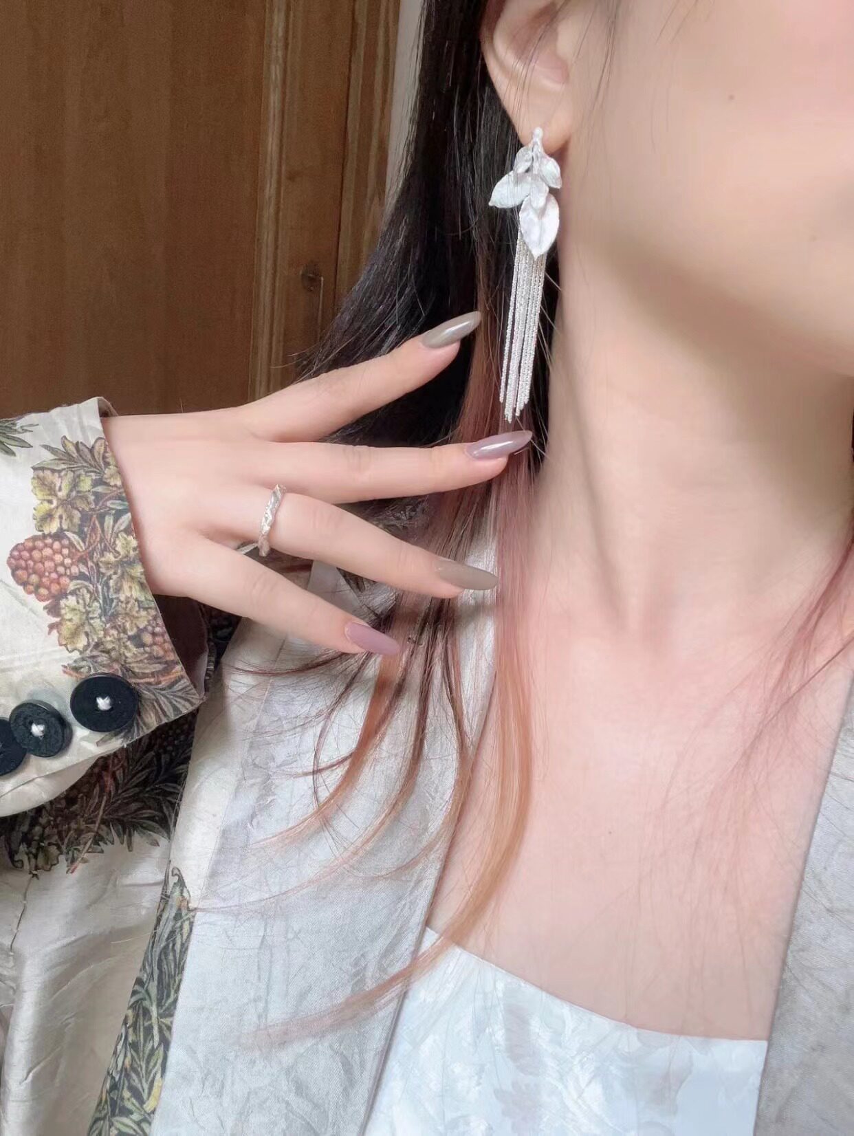 Deep Water Static Current Series Leaf Streaming Earrings 925 Pure Silver Fashion Temperament Fluor Earrings-Taobao