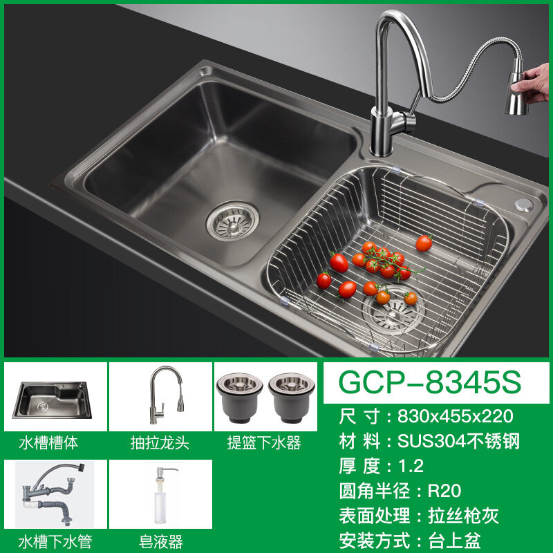 (1) Double tank sink (83 * 45) (2) Double groove common tap (3) double groove draw pull tap