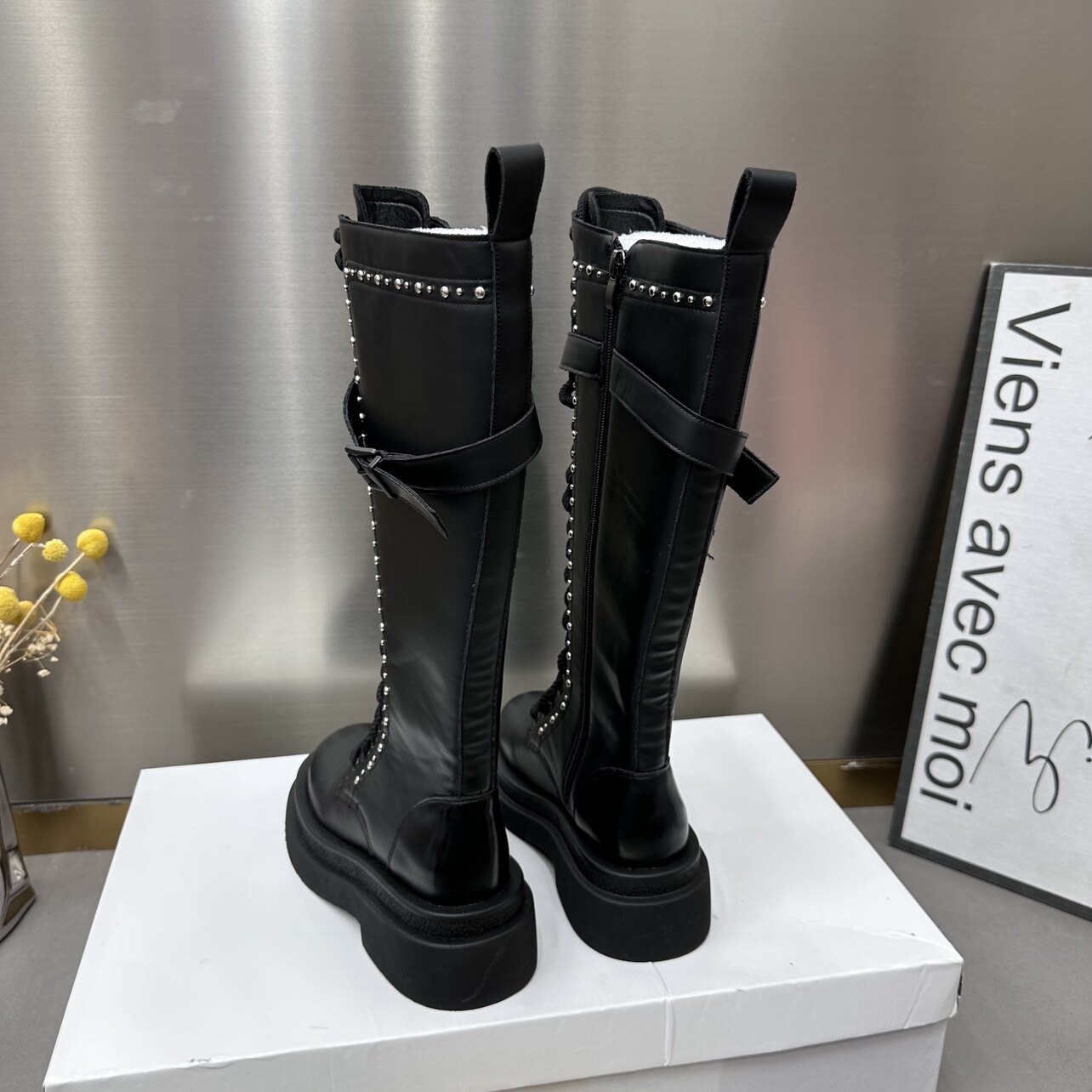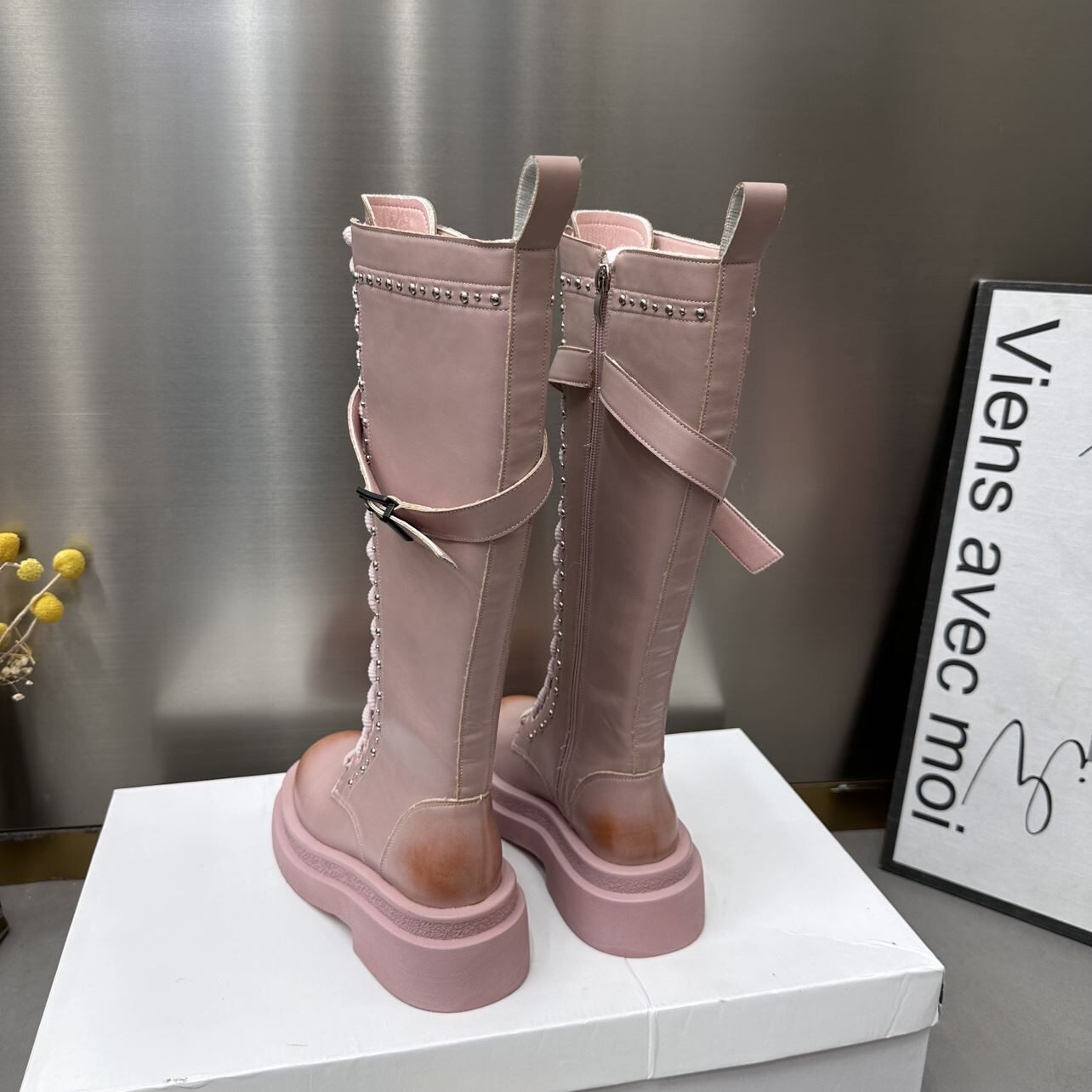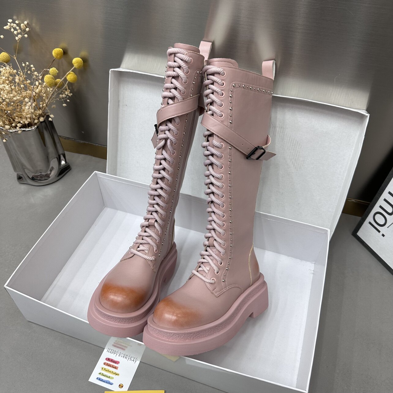 Hong Kong boomer pink though knee-high cylinder boot female reworked williding knight rider boots small crowdset boots-Taobao