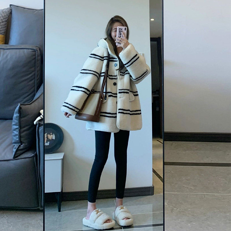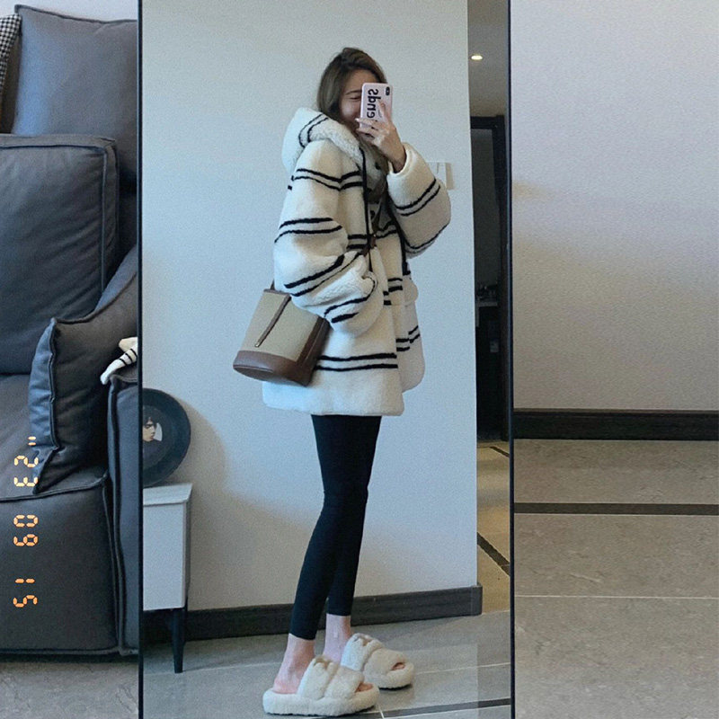 Pregnant woman coat autumn and winter outside wearing 2024 new rocking grain suede warm thickened with cap lamb hair trendy two sets of women-Taobao