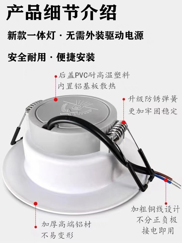 Aup illuminated led cylinder light black edge silver edge embedded in suspended ceiling aluminum open pore 7 5CM hole light three color turn light barrel light-Taobao