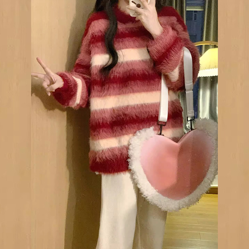 (Red Striped Sweater) (2024 This year the Year of the Dragon clothes This year's pop exploits advanced feeling ultra-good-looking loose undershirt Korean teas wearing a hitch to build a small hitch)