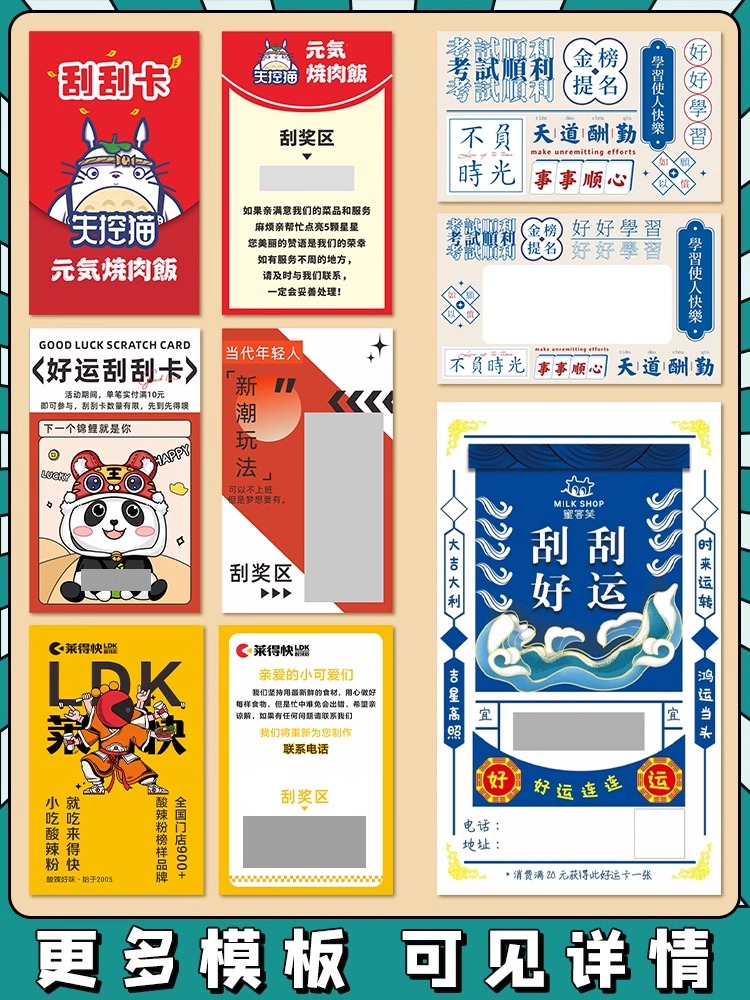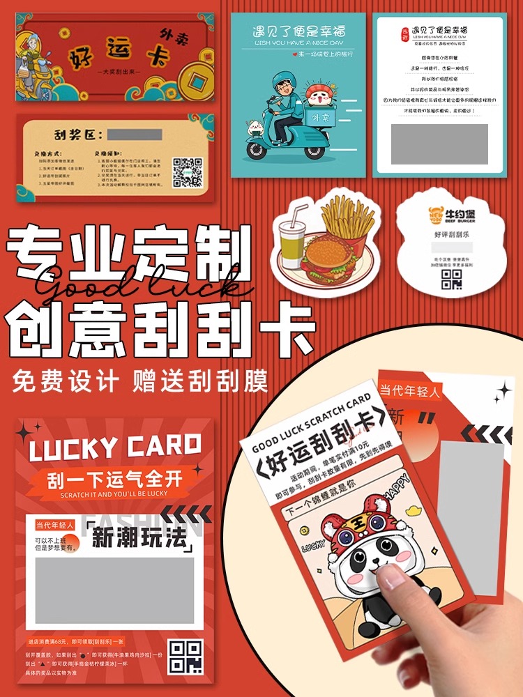 Scraped Scraped Custom Red Packet Rewards Scraping Card Print Catering Logo Design New Year Dragon Year Scrapbooking Card Takeaway Ordering Food Card Print DIY Creative Design Homemade Lottery Lucky Draw Card Making-Taobao