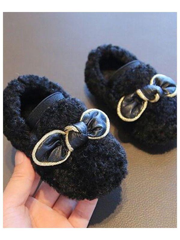 Girl Cotton Shoes Princess Fur Shoes Autumn winter Garvelvet warm little girl Bean Bean Shoes Soft Bottom Shoes Tide-Taobao