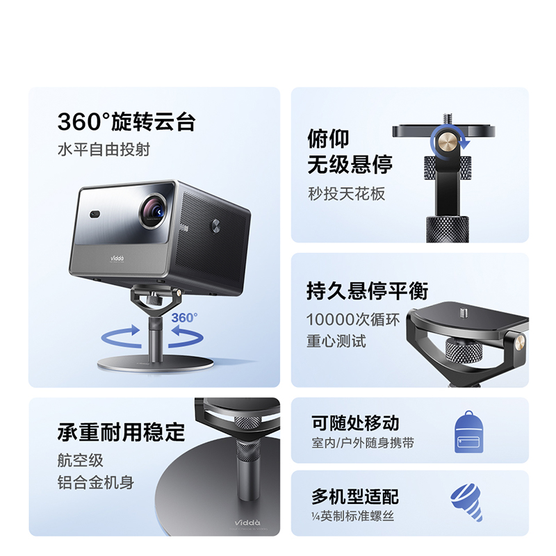 (C1Air and M1 applicable) Vidda universal tripod head D4 sea-letter projector 360 ° all-round desktop tripod head bracket home projector universal mobile living room can throw ceiling -
