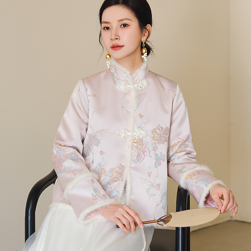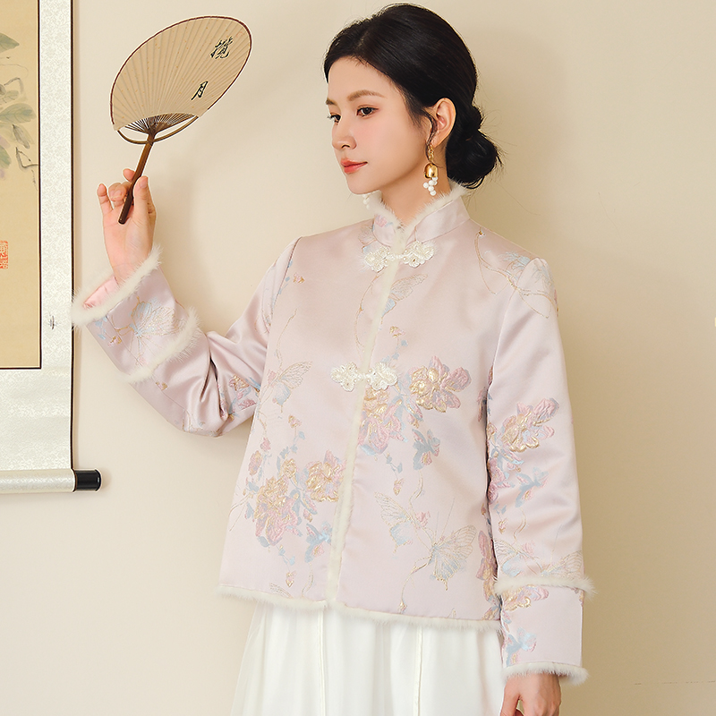 New Chinese jacket cotton clothing Improved hanfu blouses disc buckle upscale Chinese wind women's clothing Cotton Clothing Zen for women Winter-Taobao