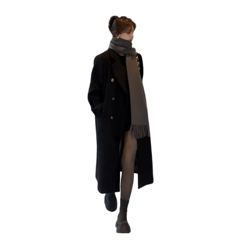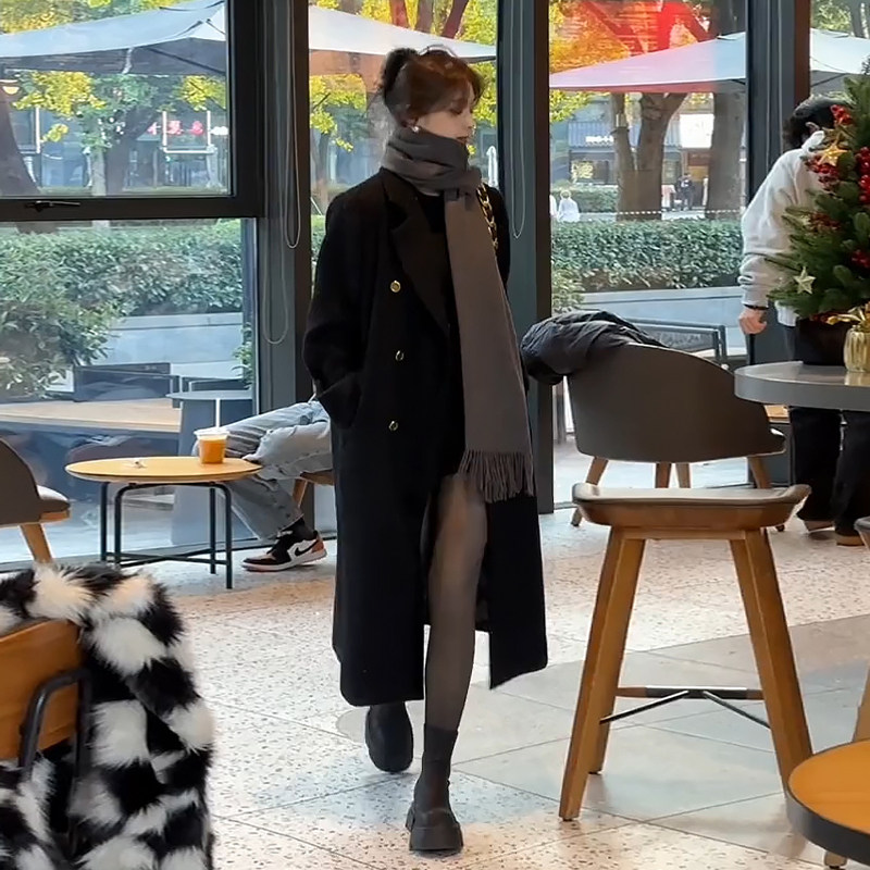 (black) (first winter coat big coat jacket female autumn winter advanced sensation 100 hitch-tie Korean system thickened clip cotton positive shoulder small sub-burst in suit with big coat)