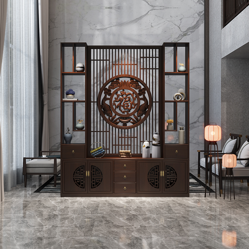2023 New Screen Partition Living Room Cabinet Entrance Hall Shielded Light Extravagant High-end Chinese Solid Wood Genguan Shelf-Taobao