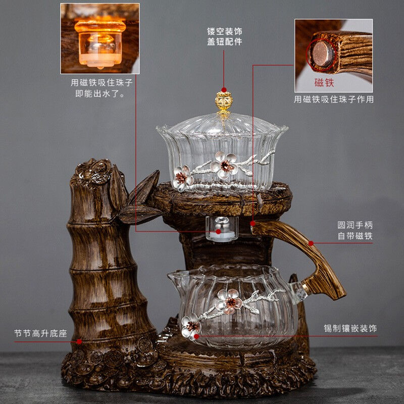 Automatic < brown bamboo-bright face > tea maker automatic < brown bamboo-petal > tea maker automatic < brown bamboo-bright face inlaid tin plum > tea maker automatic < brown bamboo-petal inlaid tin plum > soak