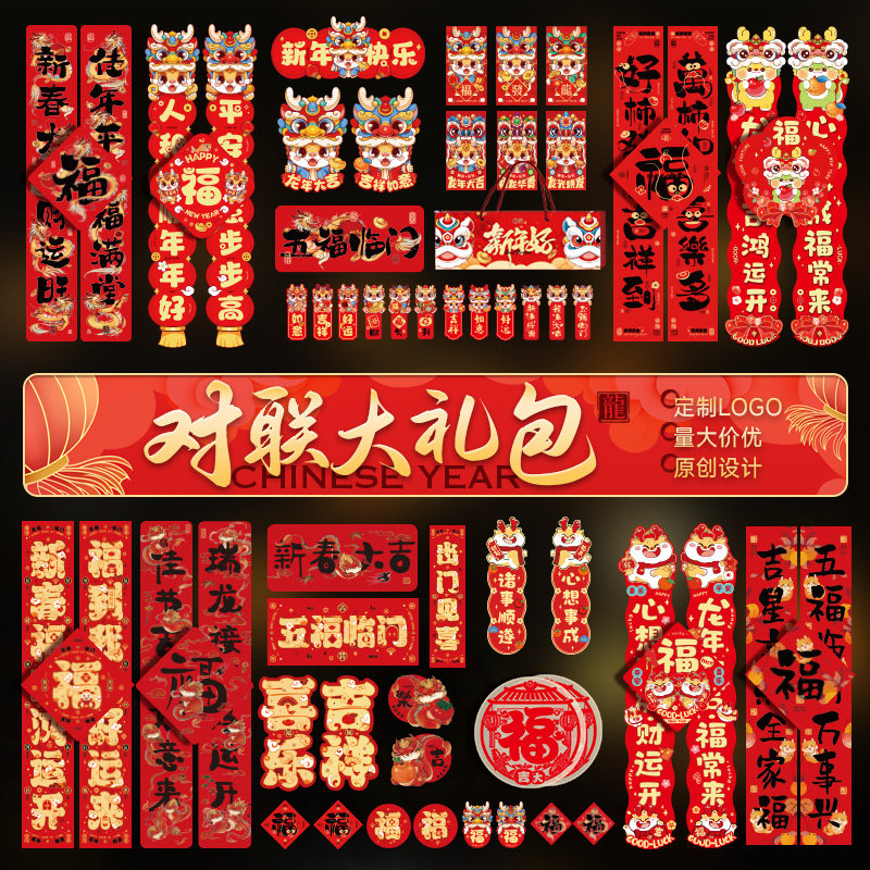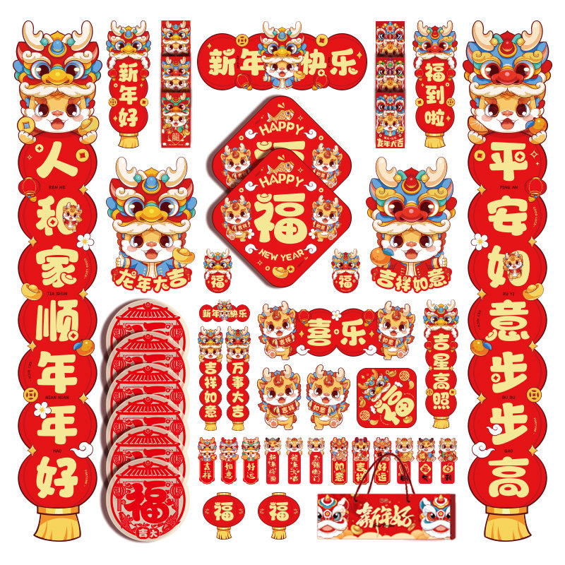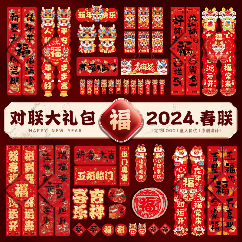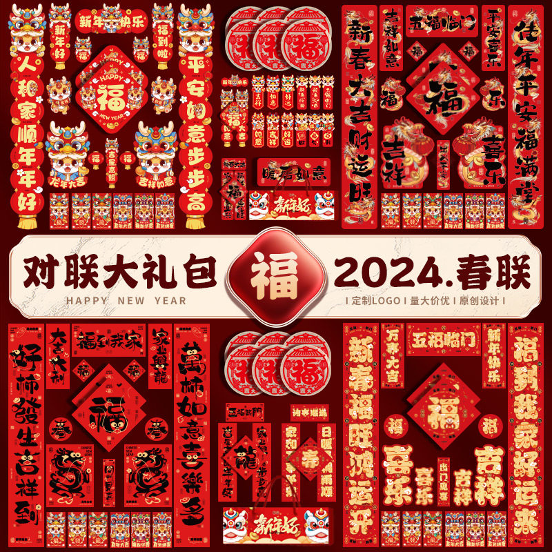 2024 Dragon New Year's new couplets New Year decorations New Year's decorations Spring Festival Home Fueword door sticker arranged for Spring Festival couplets-Taobao