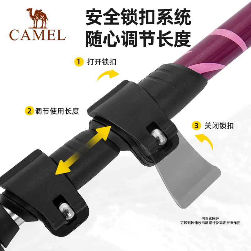 Camel Child Mountaineering Stick Cane Light Aluminum Alloy Multifunction Telescopic Non-slip Corner Stick Professional Outdoor Climbing Battle-Taobao
