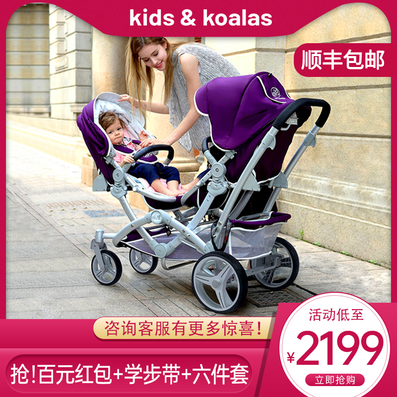 kidskoalas twins baby stroller light to sit and fold new baby Twin Seat Two-tire Cart God-Taobao