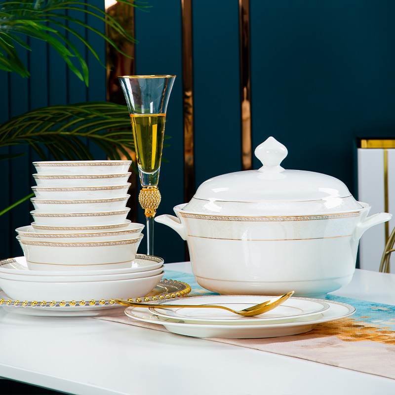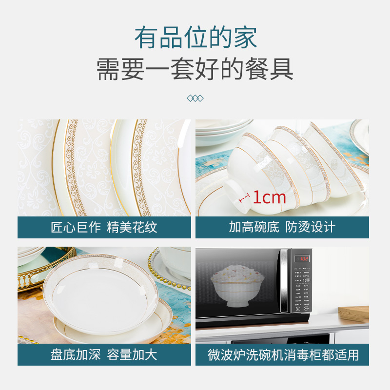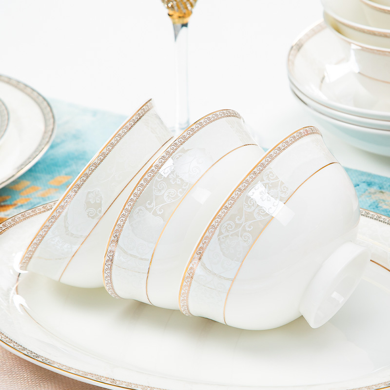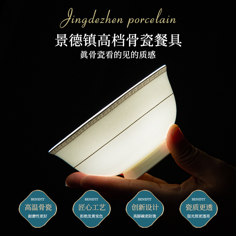 Rhymes and bowls Dish Suit Home European Style Light Luxury 2023 Jingdezhen Ceramic bones Porcelain Joe Accommodate Cutlery Bowls Pan Chopsticks-Taobao