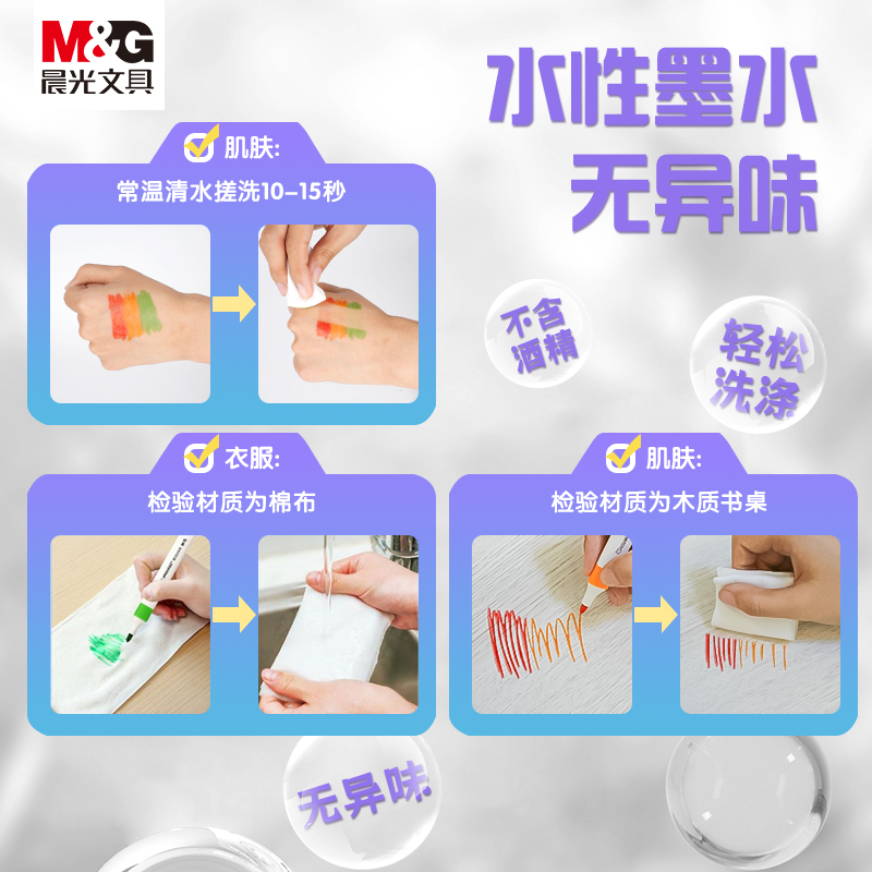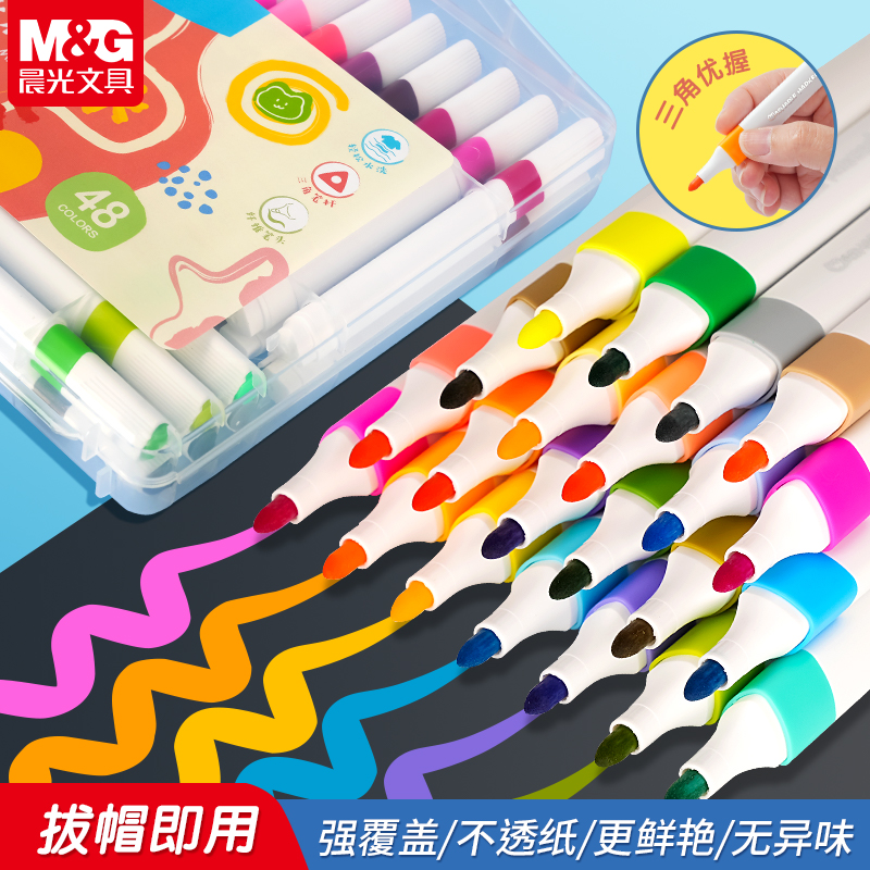 Morning light Easy washable watercolor pen children Non-toxic washable elementary school children special children Kindergarten baby 24 color paintbrush suit triangle 12 color soft head painted colorful pen 48 color drawing pen 36 color-Taoba