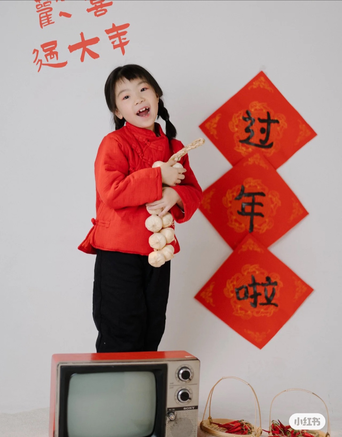 Handwritten Chinese New Year's Eve cheerleading green headscarf clothes (find customer service ask size) garlic 2 strings small lifting basket 1 small chili 2 strings of small chili 20 tomatoes strings 2 strings of handwritten New Year