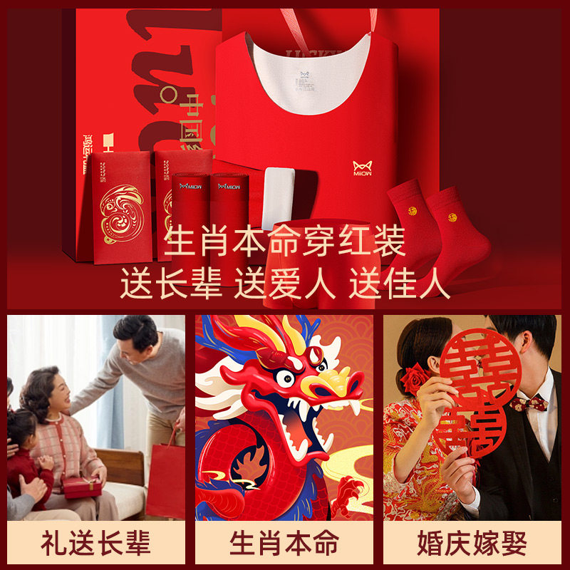 Cat People's Life Warm Underwear Lady Suit Gift Box Autumn Clothes Pants Men's Red Dragon Autumn Winter Wedding 2024-Taobao