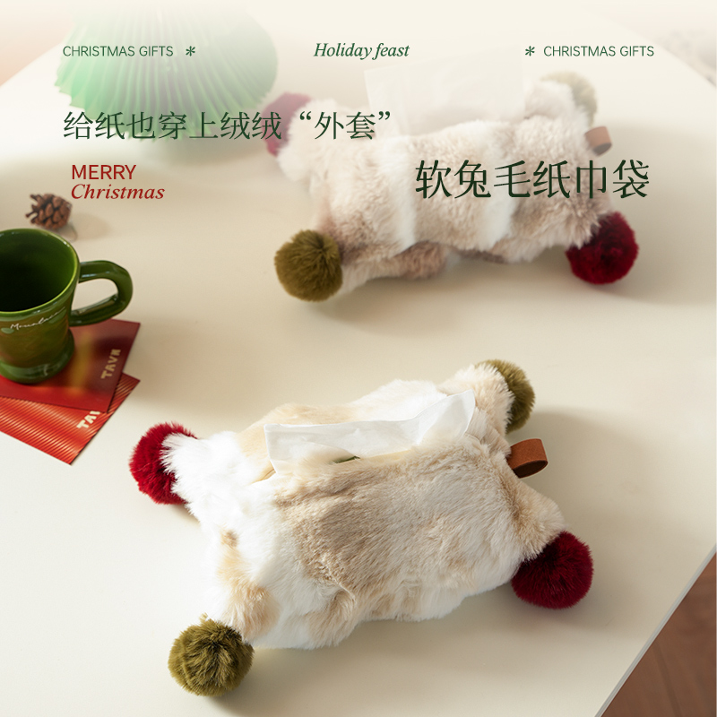 New Year Senior Sensation Plush Paper Towel Bag for Spring Festival Desktop Vehicular Pumping Paper Cover Tabletop Pumping Paper Cashier Bags Paper Towels Box-Taobao