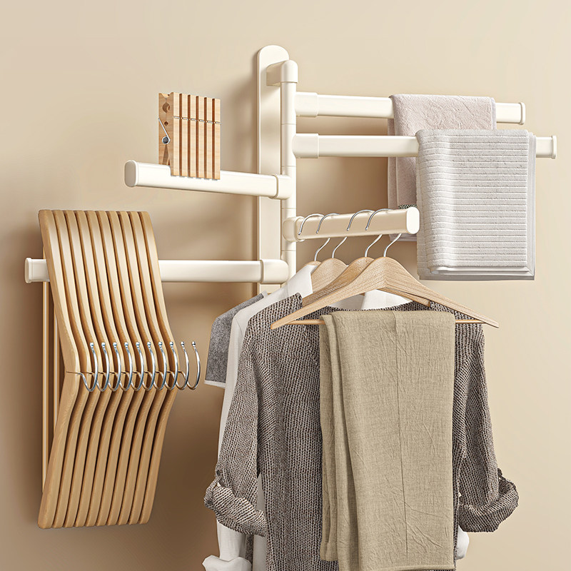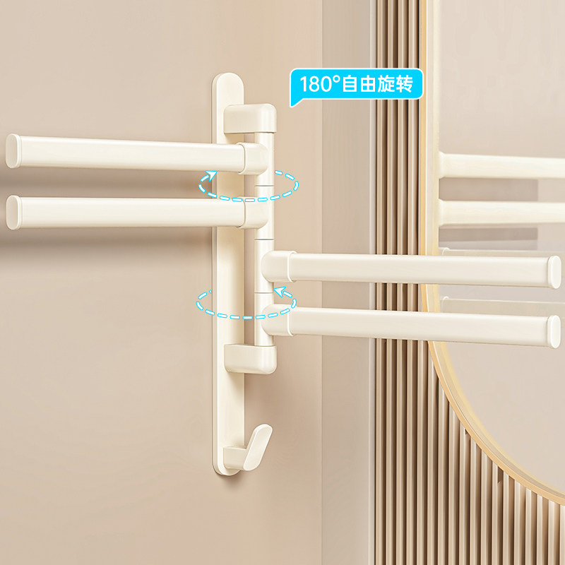 Milk white rotating towel rack toilet free from punching cold towel rack sub multi-hanging pole bathroom containing devinator shelf-Taobao