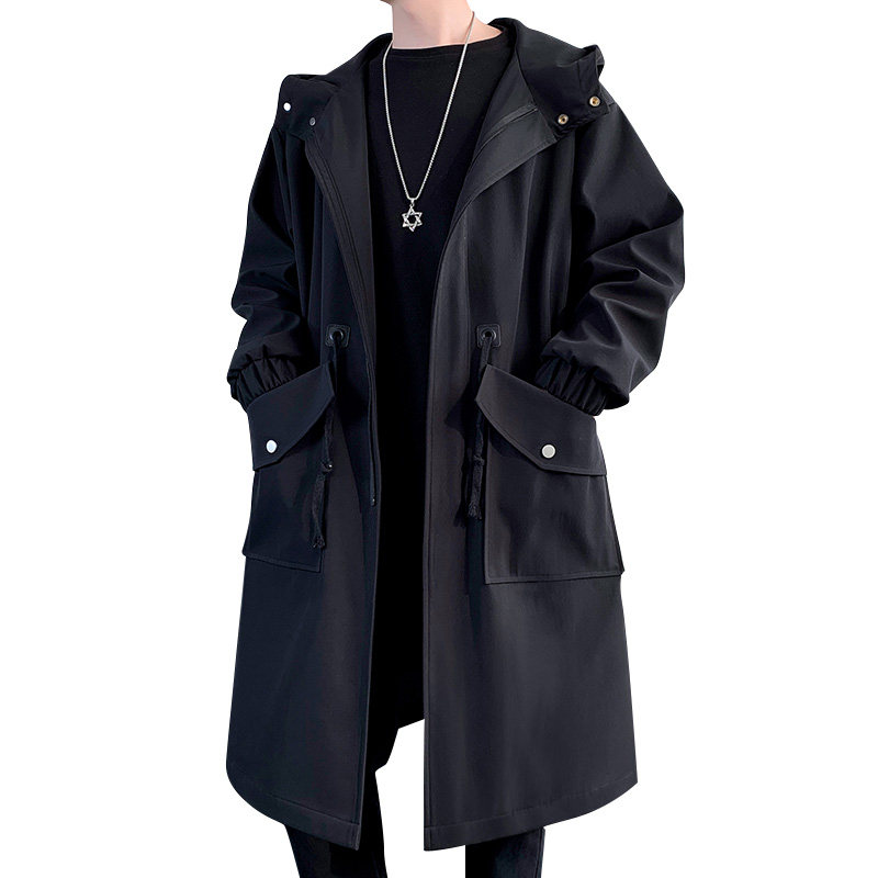 Ksuru civilian coat men's mid-autumn winter thickened Inron windsurmounted black clamp cotton with cap tooling jacket-Taobao
