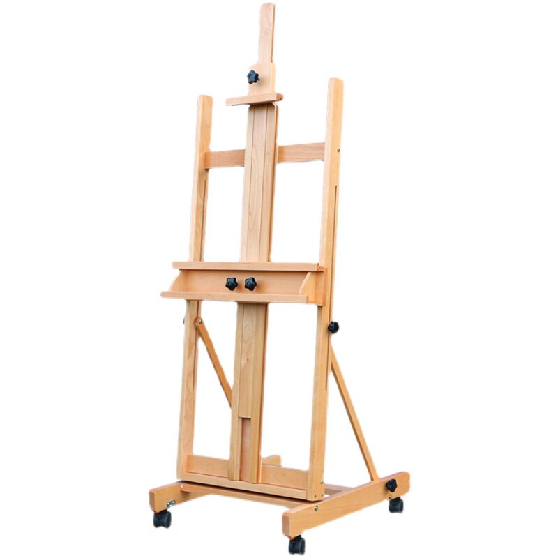 Wooden beech wood bracket type multifunctional drawing car adjustable oil painting easel adult oil painting propylene with wheel drawing frame-Taobao