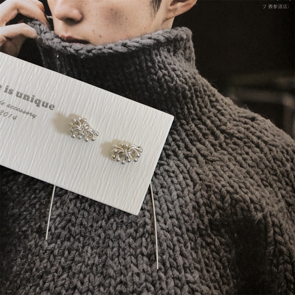Jane Fireworks Thai Crushed Silver Sub Day Series Clear Cold Sensation body 925 pure silver long ear line personality ear hanging-Taobao