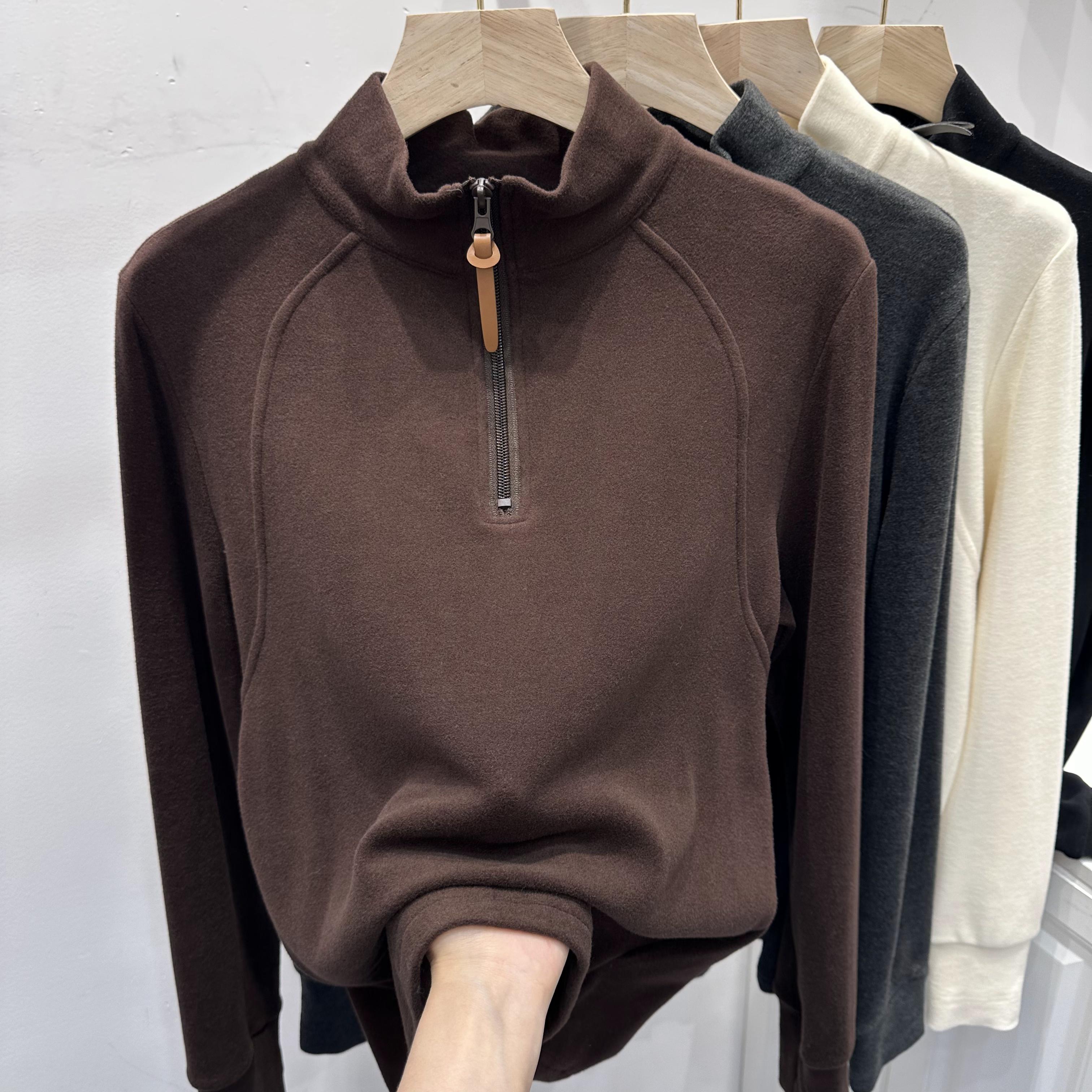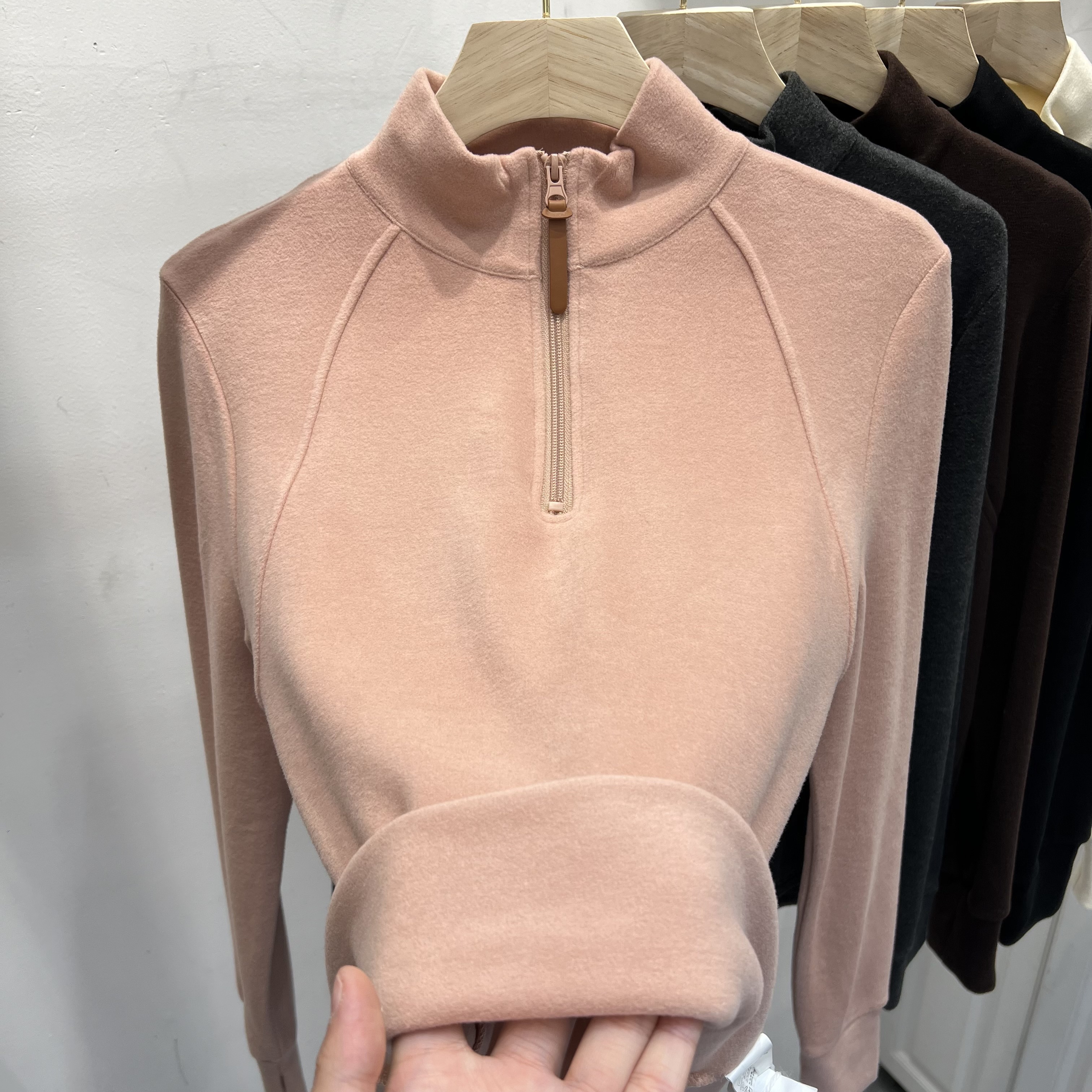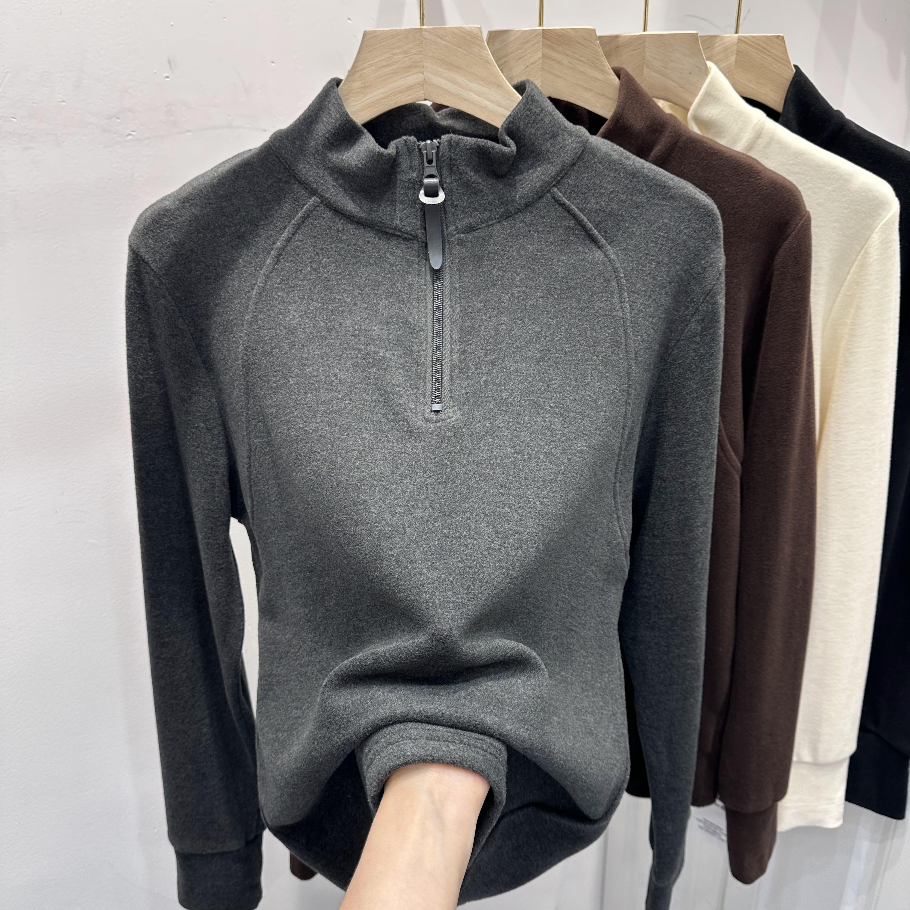 Eurostock 2023 New semi-zipped upright collar soft and two-sided derveled women's autumn and winter thickened undershirt blouses-Taobao