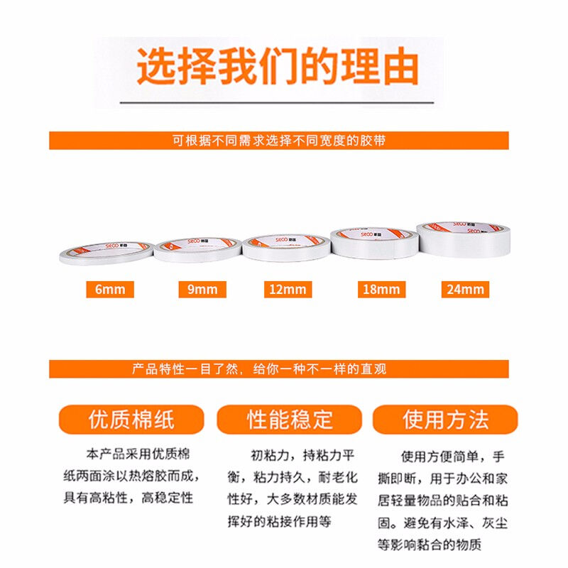 SITOO Stu double-sided adhesive tape High-adhesive office Home Two-side glued cotton paper double-sided adhesive 6mm * 9m36-Taobao