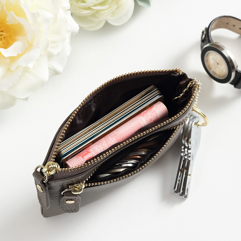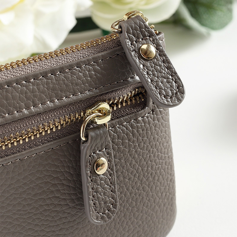 Genuine Leather Zero Wallet Woman Mini Calf Leather Hand Grab Key Bag New Coin Bag Small double zipped small wallet-Taobao