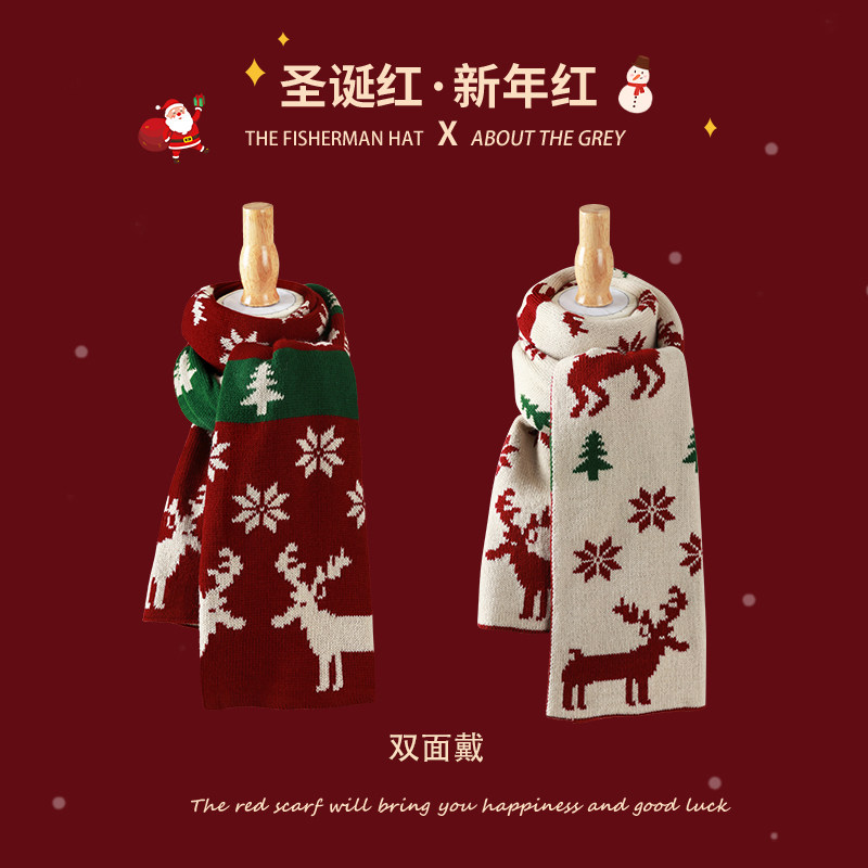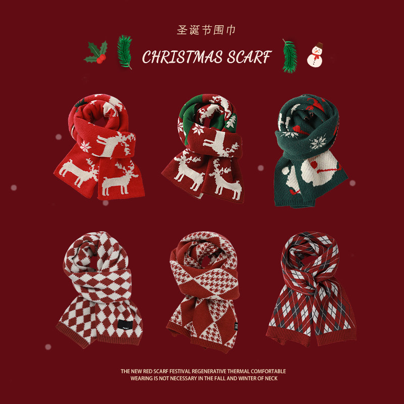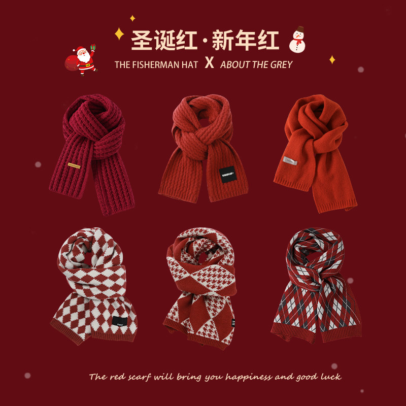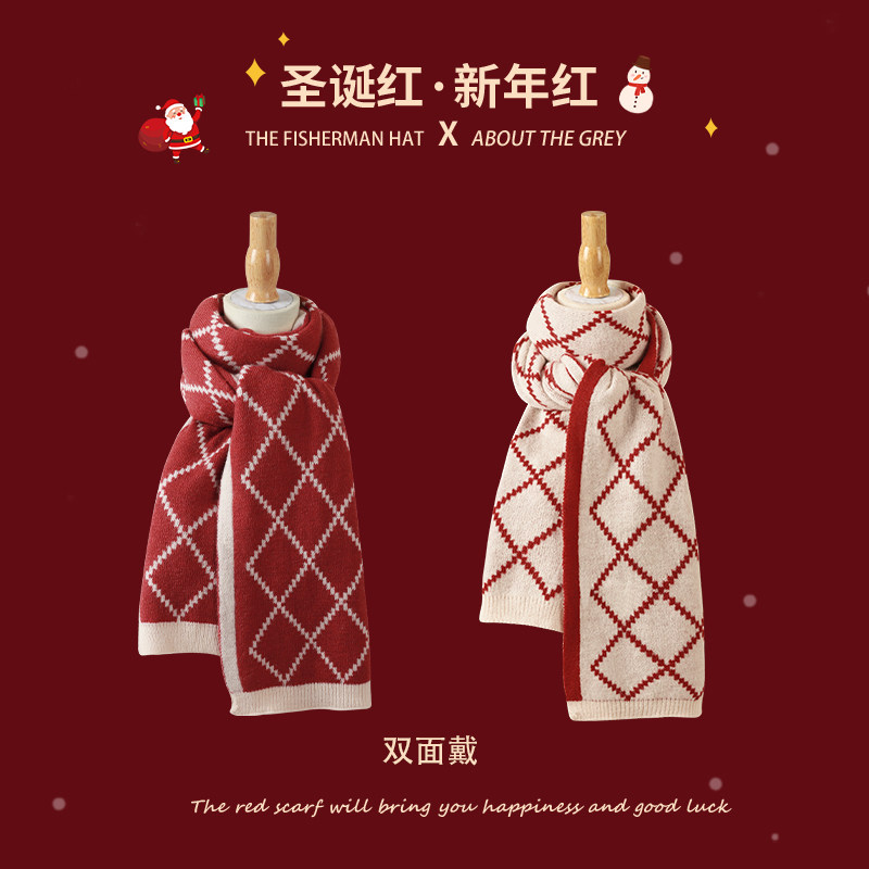 Small deer scarves-wine red little deer scarves-red deer corner scarves-red deer corner scarves-beige linen-red scarves black mark-red scarves small rhomboid-red scarves