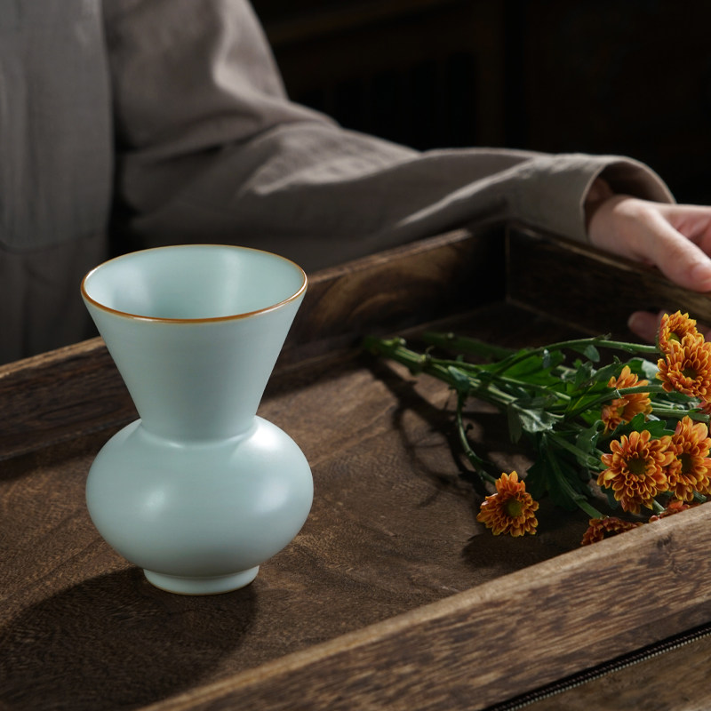 Ru Kiln Small Flower Bottle Pendulum in Jingdezhen Antique Ceramic Living Room Flower Arrangement Porcelain Light Lavish Ru Porcelain With Perfume Bottle Gift Boxes-Taobao